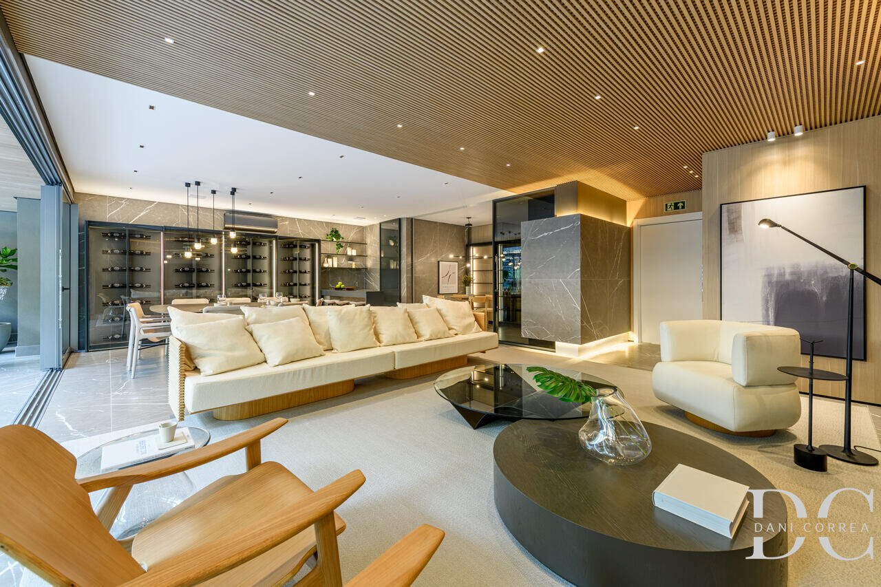 Amplo living com imensa varanda em toda extensão do living pegando ainda a suíte master. Cozinha que pode aberta integrando os ambientes de estar e gourmet ou copa cozinha. Espera para lareira á gás. Piso Porcelanato grande no living, cozinha, área de serviço.