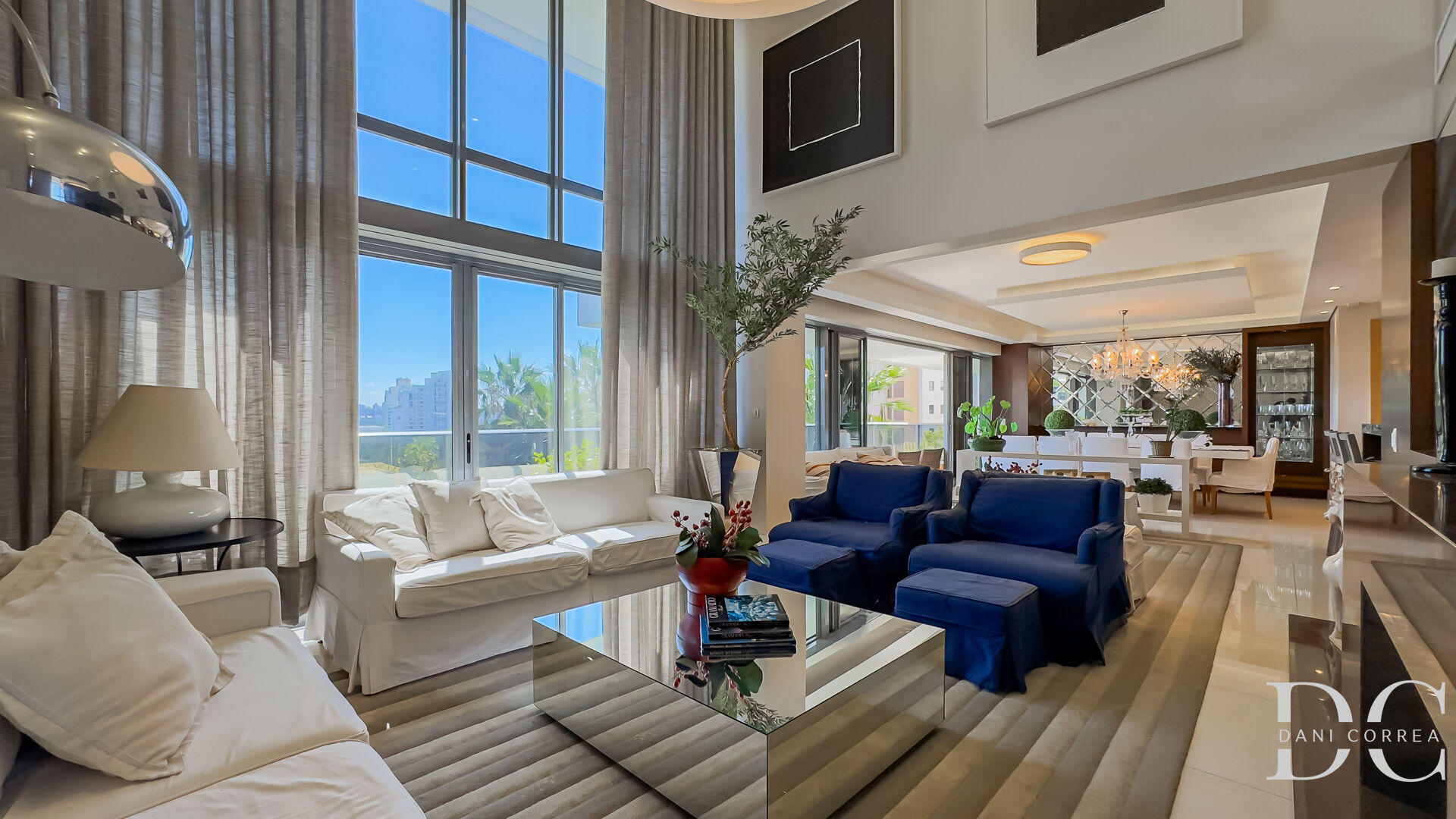 Apartamento com hall privativo e elevador codificado, living amplo com 3 ambientes sendo sala de estar com lareira e pé direito duplo dando muita luminosidade aos ambientes, sala de jantar está junto ao espaço gourmet com churrasqueira e uma bela sacada de onde se pode admirar o lindo paisagismo e o pôr do sol, sensação de estar numa casa. Ainda tem lavabo e espaço para home office reservado.