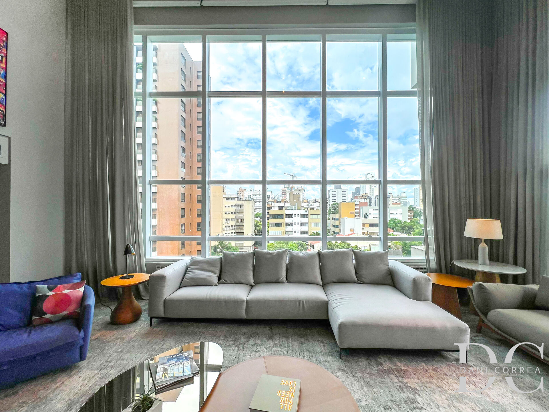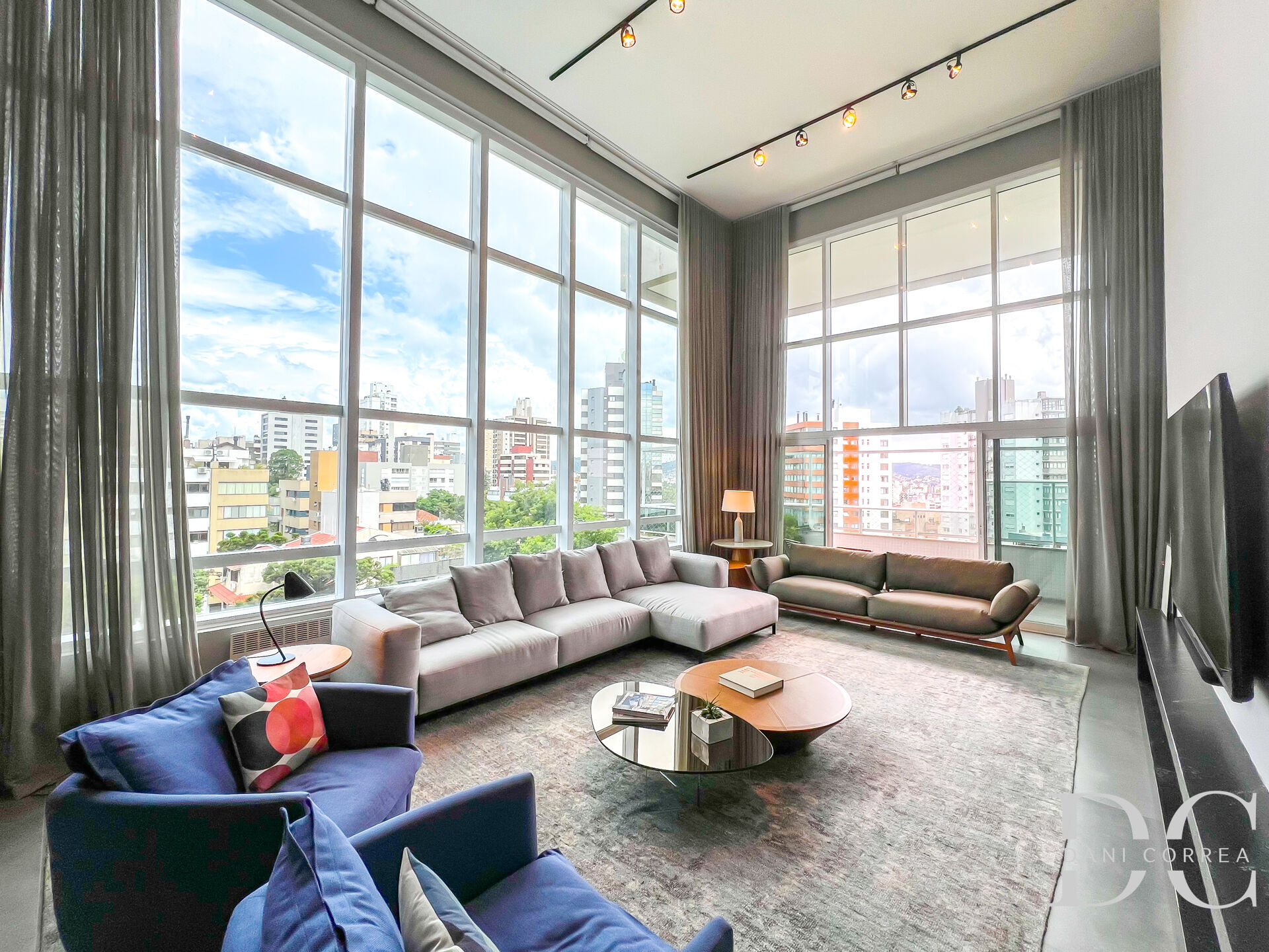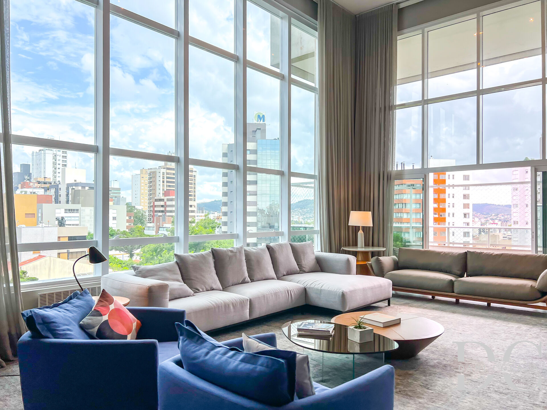 São 305m² privativos, amplo living em 3 ambientes com cortinas automatizadas, sistema de som integrado, sala de estar com pé direito duplo, lareira e sacada, sala de jantar integrada com espaço gourmet, lavabo.