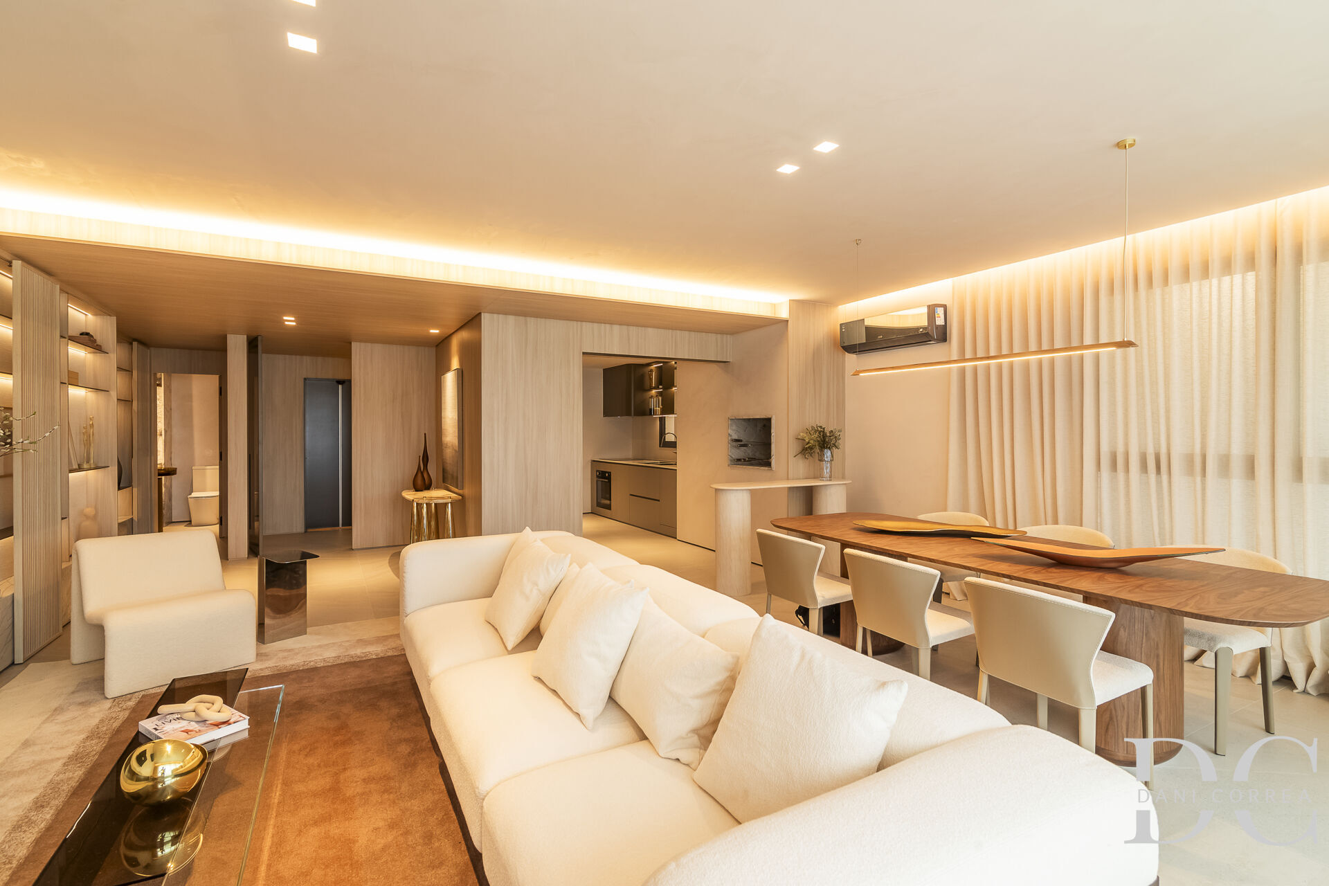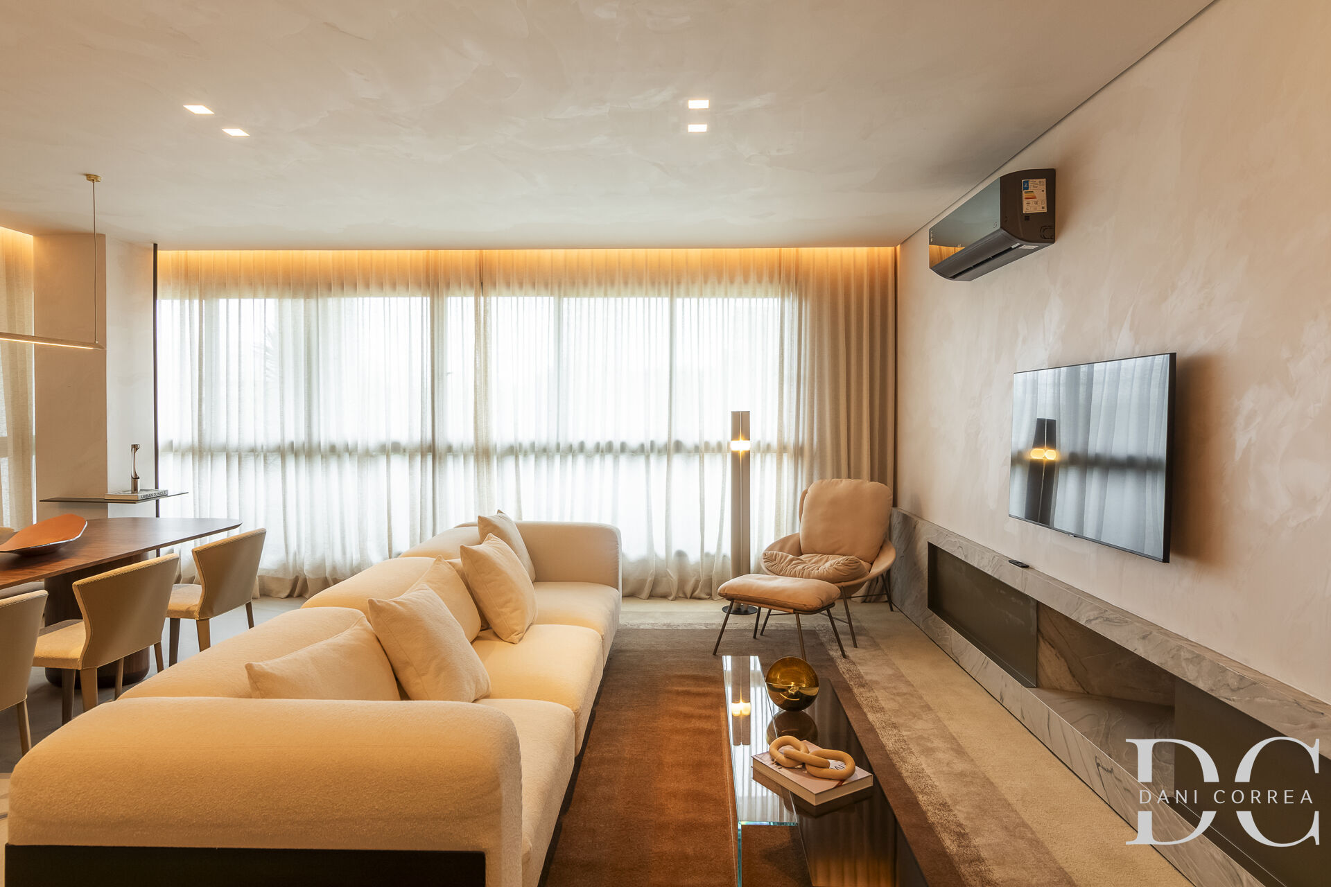 Apartamento com 172m² privativos com elevador e hall privativo tendo living em 3 ambientes com esquadria de vidro de piso ao teto dando muita luminosidade, sala de estar com lareira, lavabo, sala de jantar integrando-se ao espaço gourmet com churrasqueira com acesso a cozinha americana, área de serviço separada com banheiro auxiliar.